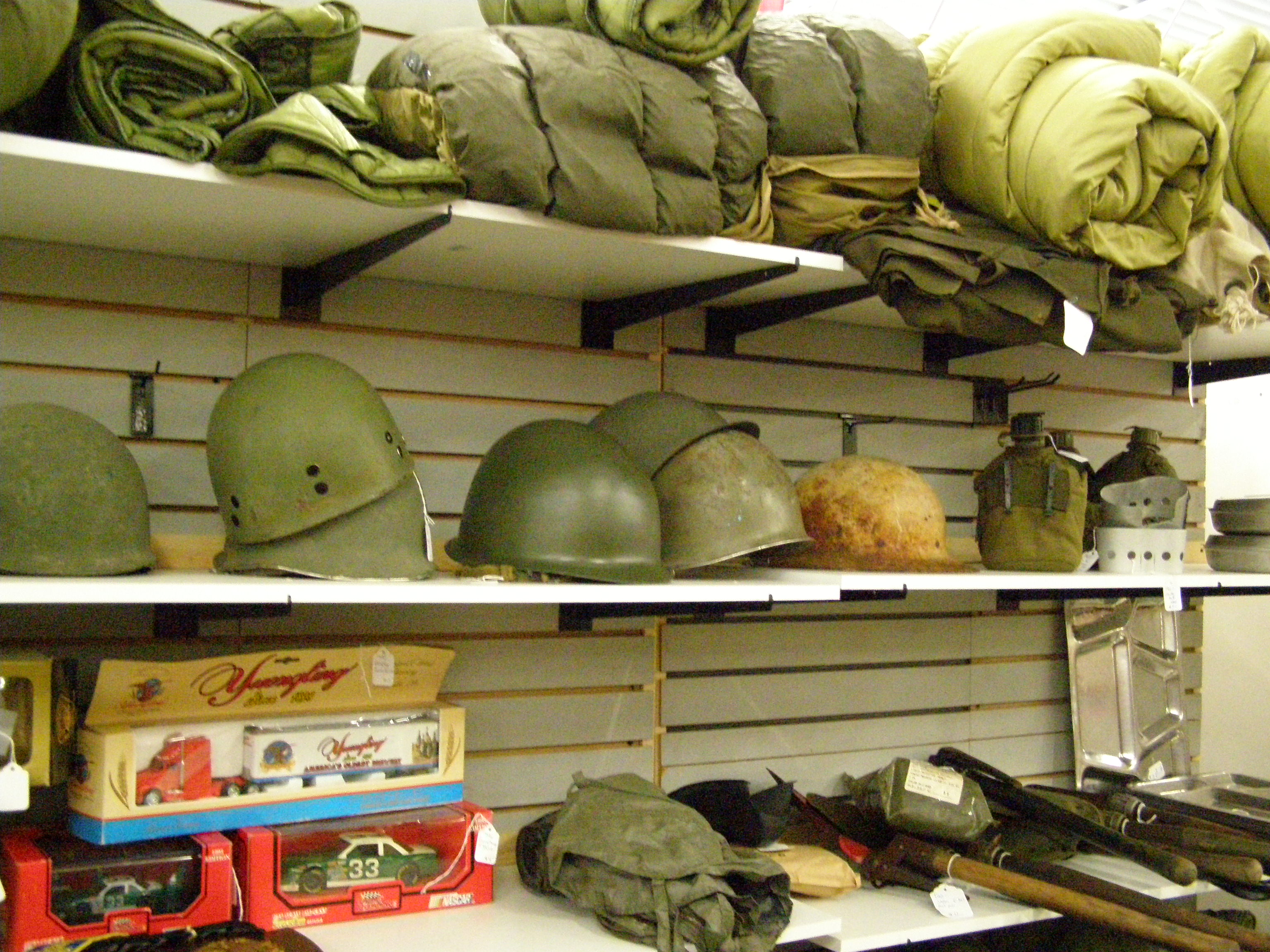Military Gas mask, field gear, helmets, medals, stickers, camouflage, flags, police, swords, knives, ammunition, ammunition boxes, toy soldiers, girl and boy scout. [Show slideshow]